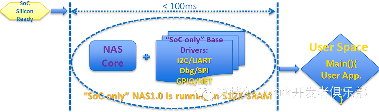灵活性出色的“SoC Only”模式可以提供在小于512KB的内部SRAM环境下以100ms的速度启动,对于原生的纳微应用无需借助BSP、启动引导程序或第三方的OS,可以根据需要调用外部存储或者第三方驱动程序,包括I2C、UART、Dbg、SPI、GPIO和标准网络接口。