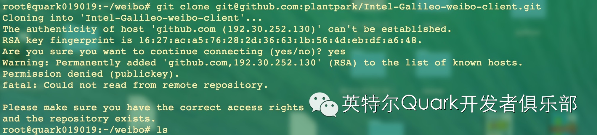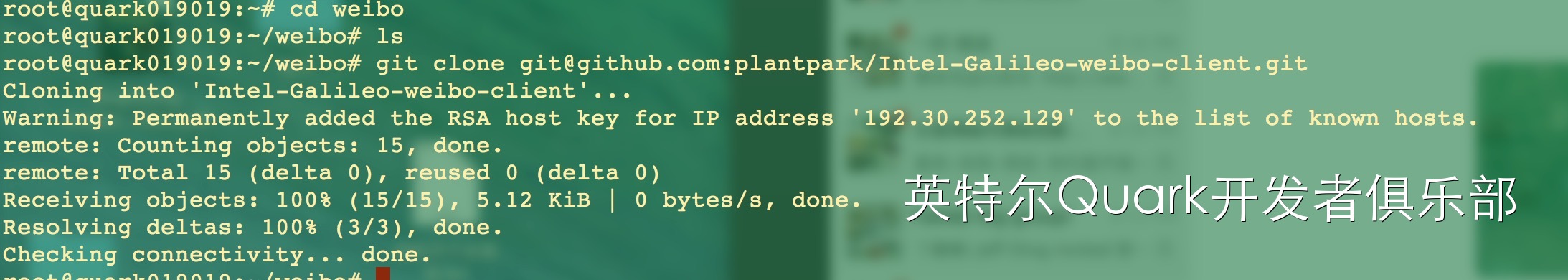 用到的程序在Github(https://github.com/plantpark/Intel-Galileo-weibo-client),首先需要将其用git下载到Galileo本地。