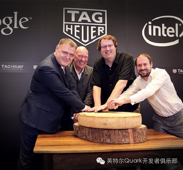 (左至右依次为)LV旗下腕表品牌泰格豪雅的总裁Jean-Claude Biver,Android智能穿戴设备的工程总监David Singleton,和英特尔全球副总裁兼新设备事业部总经理Michael Bell联合宣布正式合作。