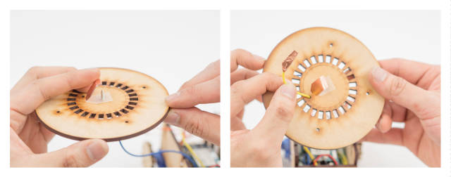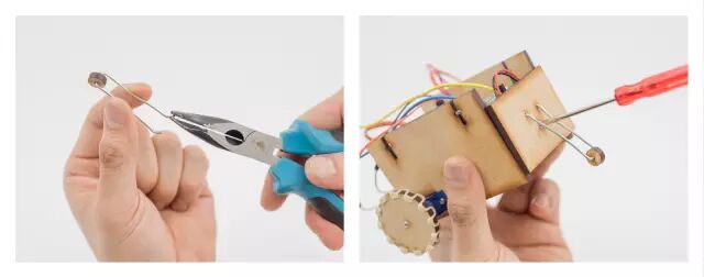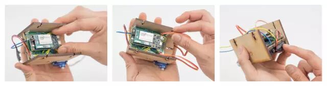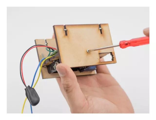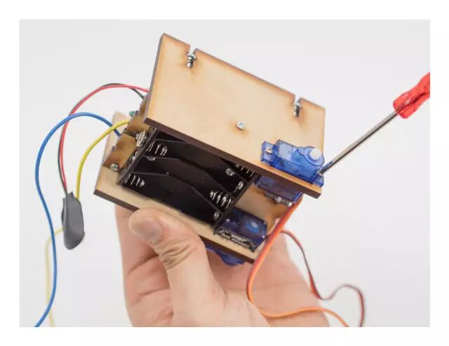 在这种情况下,我们使用一个4节AAA电池盒来对电机供电。电池盒可以提供5-6V,正适合电机。另一个好处是电池盒体积小,便于安装。
