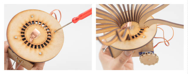 注意:螺丝主要用于连接铜带。调整好螺丝高度跟塑料开关的形状,这样能更方便地将它们连接上。
