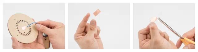 在B8部分边孔中插入其他篮球传感器导线,并将它们焊到小条铜带上。