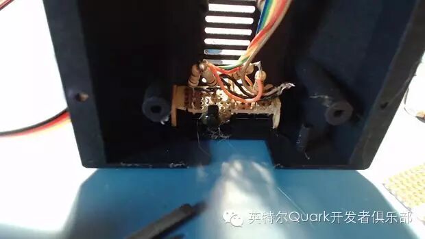 最后,连接直流插孔。简单地将一条导线从地连接到插口的地线上,一条从VIN到插口正极,这里要格外小心哦,一不注意就会短路啦。