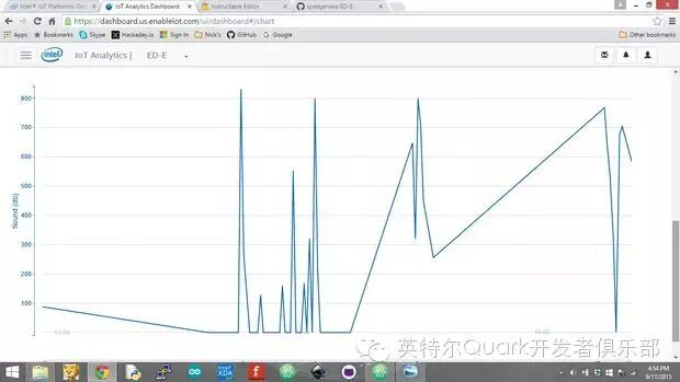 如果基础单元运行正常,esp8266就能运行成功,当开关处于关闭状态时,Huzzah板将会传送数据到ED-E中,也会存储到MySQL数据库,最后输出到英特尔IOT分析程序中。