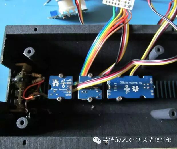 2.在按钮安装过程中,用6个M2x5mm的螺丝,仔细地将空气质量、火焰和声音传感器安装在板的一边;