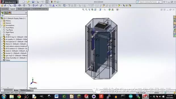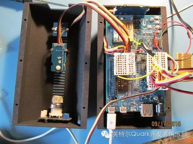 它包含了英特尔的Edison开发板,6个格罗夫传感器,一个OLED显示器,4个为用户提供输入输出的按钮和一个紧急报警器,这些都被封装在一个3D打印盒里。