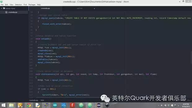 基础单元不仅可以把数据上传到英特尔的IOT分析中,并且在本地MySQL数据库中也有存储。你可以通过键入mysql访问它,在use EDE命令中选择ED-E数据库,然后用select * from air;命令去查看某个传感器的数据,然后点击exit退出。
