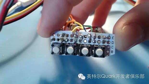 这一步你将需要4个按键,4个10K的电阻和一些电缆,另外还有一块儿博原板。