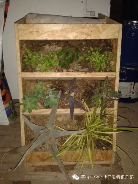 这个小花园的外观是用OSB板来制作的,设计的时候考虑到可以堆叠或并排。