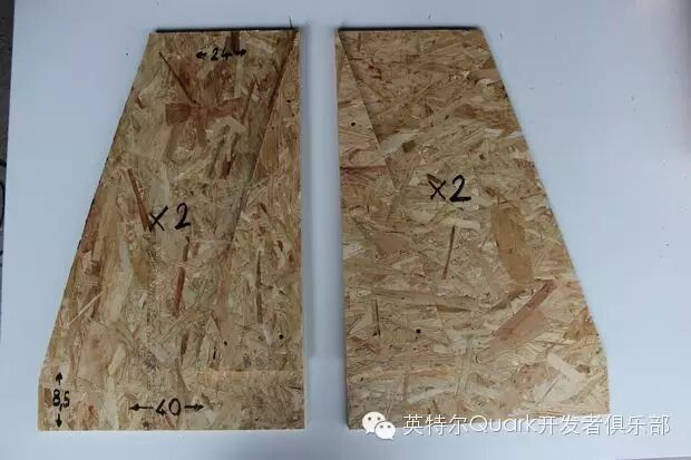 3) 将尺寸为40x60cm和40x24cm的板以40cm为共同边拼起来;
