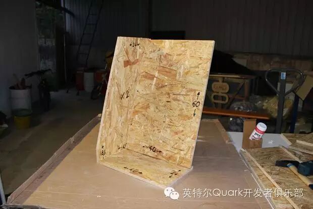 4) 沿着上述切割的斜面用40x60cm板安装容器的底部;