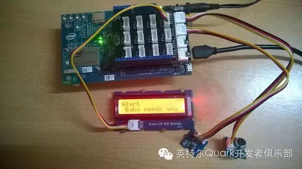 anglebaby大婚在娱乐圈炒的沸沸扬扬,奢华婚礼的冲击力也暂时告一段落,我们也借机来讲一讲baby。这一款作品是用英特尔Edison制作的宝贝监视仪,Edison对于可穿戴设备来说尺寸刚刚好,它为开发者提供了很多弹性,例如语言和内置的编程环境,开发者可根据自己的想法进行设计,另外Edison还可通过蓝牙或WiFi与其他可穿戴设备相连。近来可穿戴市场不断繁荣,设计的目的也不尽相同,因此,我们为什么不为小宝贝们也设计一款智能设备呢?现在很多年轻父母既要忙于事业,又要担心小孩子的身体状况,往往搞得年轻人心力交瘁效果却不尽人意,婴儿需要被24*7地监视,体温,环境安全性等等。这一系统包括英特尔Edison模块,Arduino扩展板,模拟麦克风,温度传感器,LCD显示屏等。模拟麦克风是一个简易的声音传感器,用来检测环境中的声音强度。